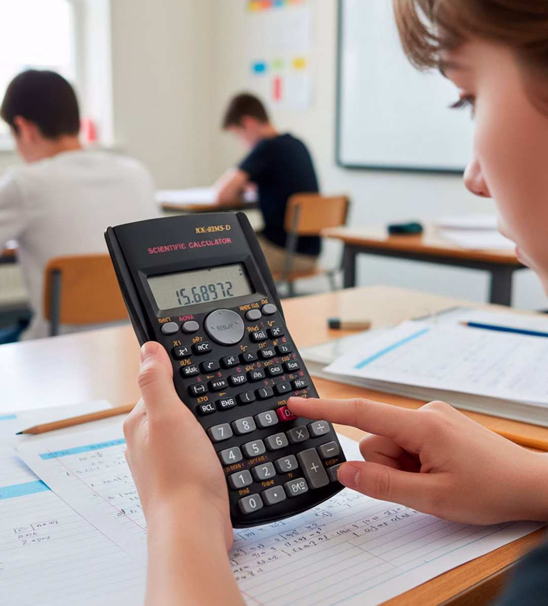 La Calculadora Científica KK-82MS-D es un aliado indispensable para enfrentar desafíos matemáticos con total confianza. Diseñada para ser intuitiva y robusta, cuenta con un sistema de pantalla de 2 líneas que te permite ver tanto la operación ingresada como el resultado final al mismo tiempo, evitando errores de digitación.