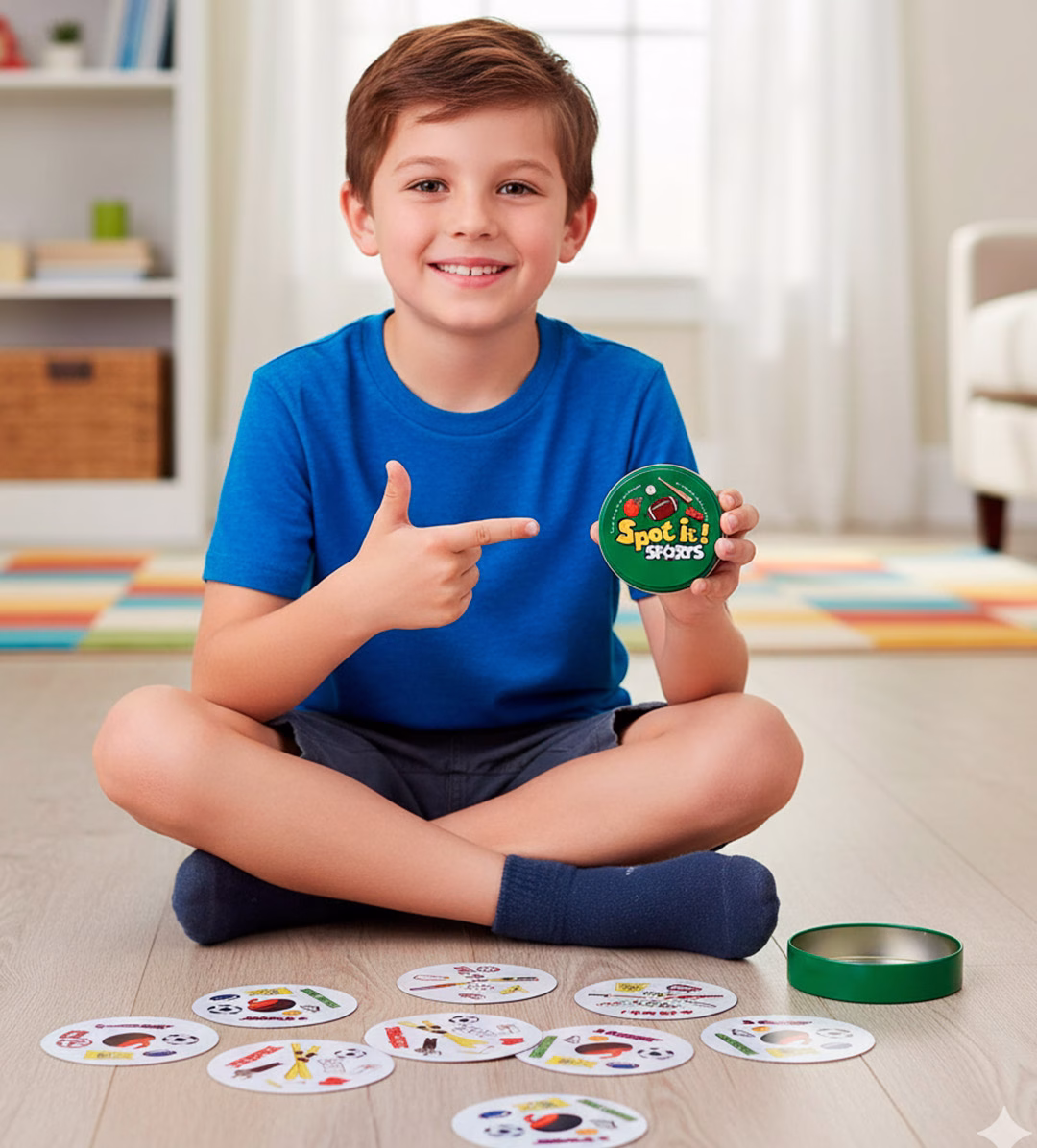 Dobble Sports es el juego de cartas más rápido y emocionante para los amantes del deporte. Esta versión del clásico “Spot It!” pone a prueba tus reflejos mientras buscas balones, trofeos y equipamiento deportivo. Cada carta es única y, mágicamente, siempre hay un solo símbolo idéntico entre dos cartas cualesquiera.
