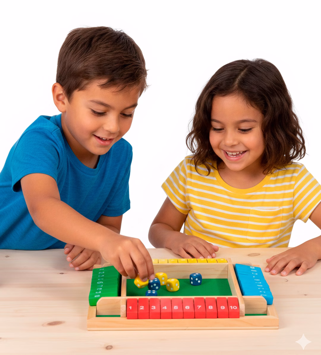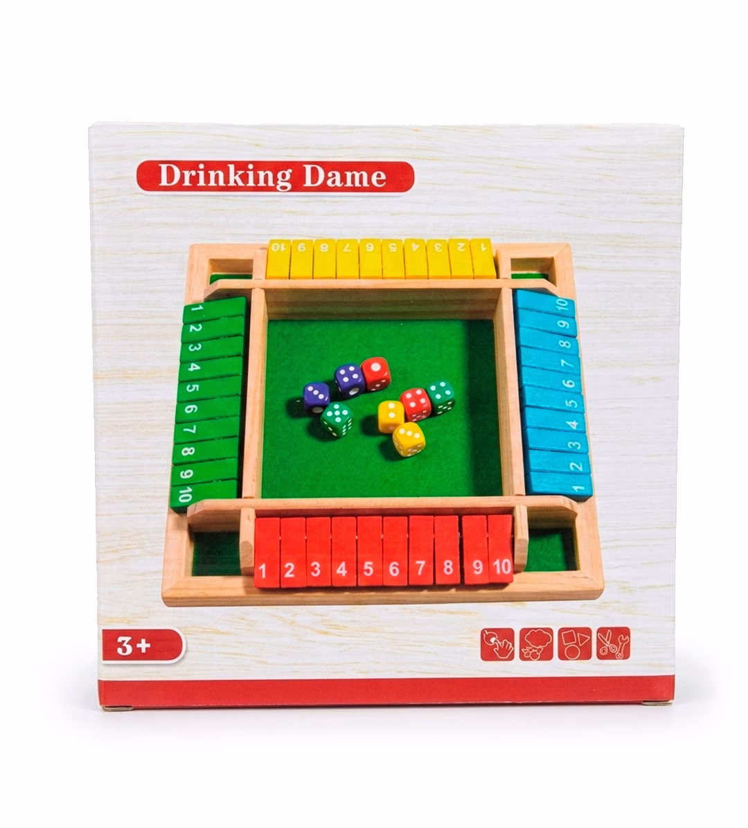 Drinking Dame es un emocionante juego matemático de madera diseñado para que los niños aprendan jugando. A través del lanzamiento de dados y el movimiento de fichas numeradas, este tablero colorido refuerza el cálculo mental, el pensamiento lógico y la concentración.