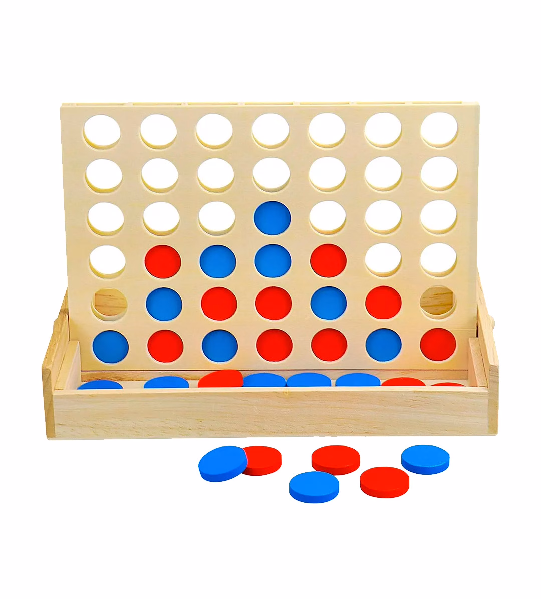 🔹El juego incluye un tablero de madera con orificios donde los jugadores pueden insertar las fichas de colores.